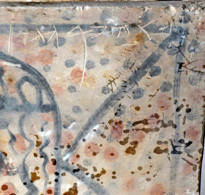 Only one other ossuary decorated with color is known (no. 209 in Rahmani’s Corpus, discovered in a cave on Shmuel HaNavi Street in Jerusalem), and Rahmani notes that it is the only ossuary known to have been adorned with polychrome painting. It is therefore reasonable to assume that the ossuary before us and that ossuary were decorated by the same individual.