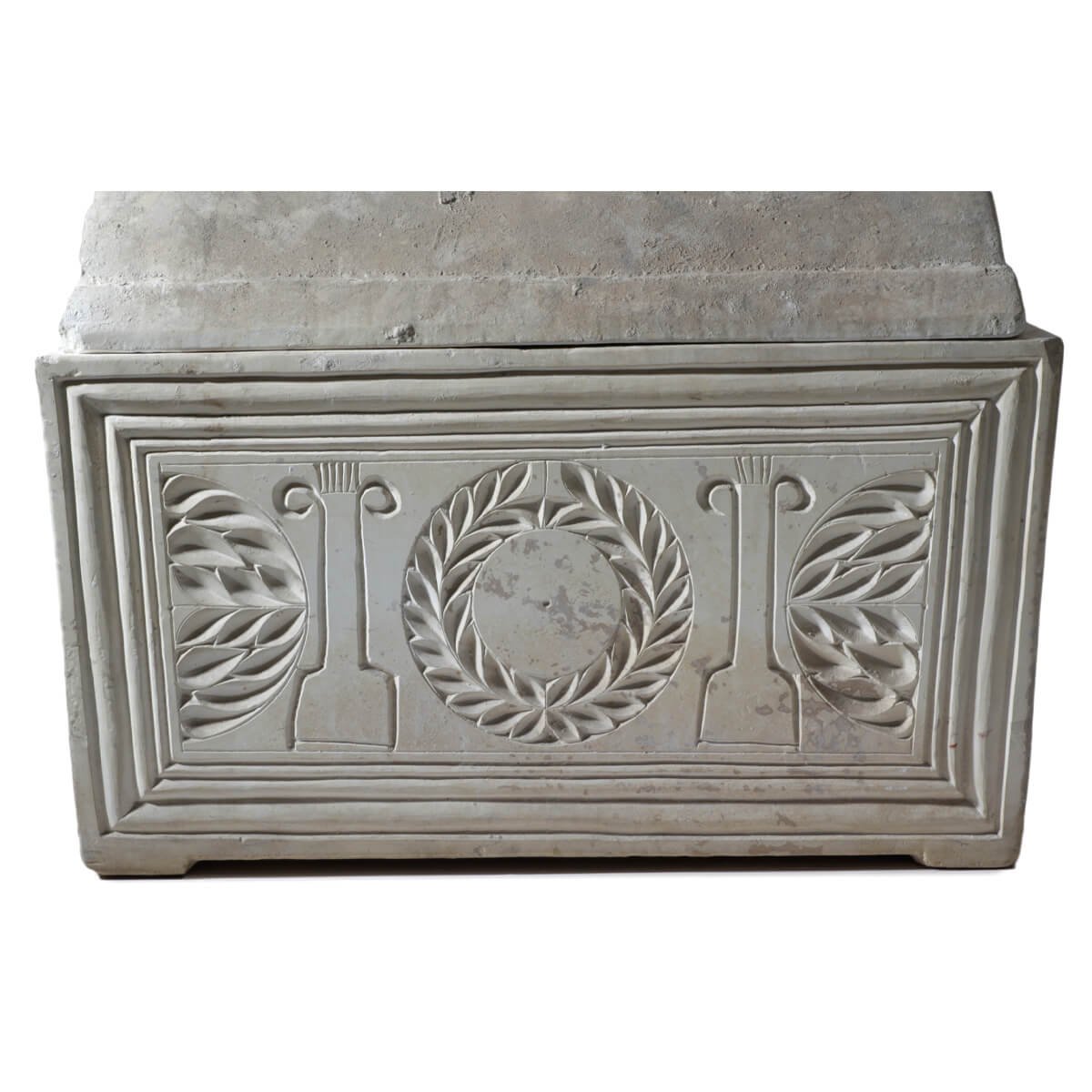 An ossuary decorated with 2 columns (schematic decoration) and wreaths.